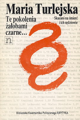Te pokolenia żałobami czarne ... : skazani na śmierć i ich sędziowie / Maria Turlejska. - [Wyd. 3 i.e. 2 popr., uzup. i opatrzone indeksem osób]. - Warszawa : Niezależna Oficyna Wydawnicza, 1990 (Warsz. Łódź : DDWAW ZGWN). - 476, [2] s. ; 21 cm.